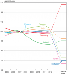 - er übergeht sehr geschickt, das hauptproblem bzw. den primären entstehungsgrund der eurokrise zu erwähnen. wir hatten durchschnittlich zwar 2% inflation. aber in schland war sie permanent zu niedrig, in südeuropa permanent zu hoch und frankreich hat quasi ne punktlandung hingelegt.