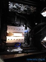 Der 2. CPU Lüfter (optional) passt leider wegen den Ram Riegeln nicht mehr rechts an den CPU Kühlkörper ran daher wurde er halt zum Gehäuselüfter umfunktioniert um die Wärme nach oben abzuziehen.